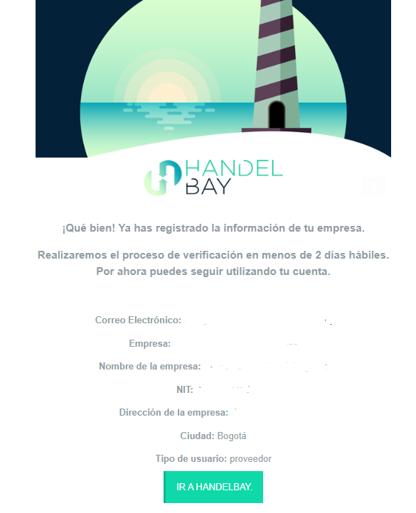 Cuanto tu empresa este activa y validada te llegará un correo electrónico con el asunto "Bienvenido a HandelBay" y si estas invitado a un proceso cerrado puedes informarle al comprador que ya te llego la notificacion de que estas activo y que realice la invitación al proceso.