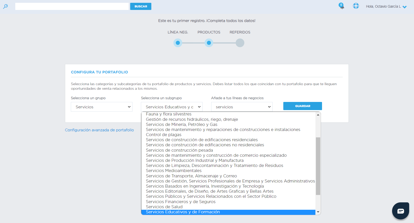 Esta configuración de las categorías que tienes en tu empresa, es importante para que puedas ser invitado a los procesos de compra.