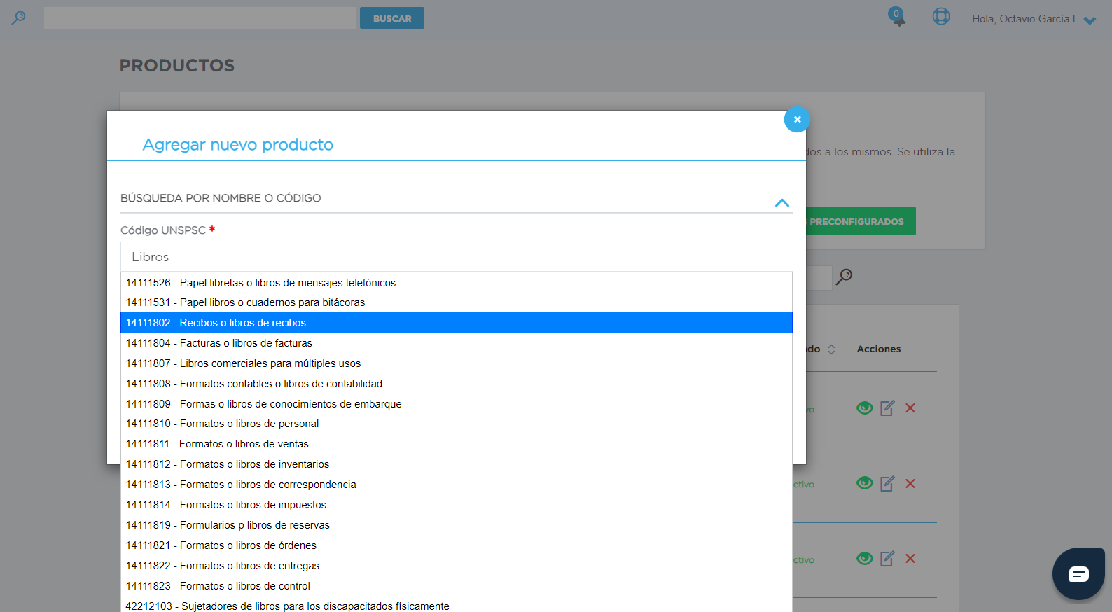 BÚSQUEDA POR NOMBRE: Si conoces el código UNSPCS ingrésalo en este espacio, de lo contrario puedes escribir la palabra clave y te aparecerán diferentes opciones. Selecciona la más adecuada de acuerdo a tu criterio.