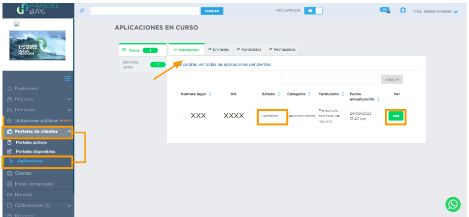 Si deseas ver en qué estado se encuentra el envío del formularios de aplicación a portal, sigue los siguientes pasos.